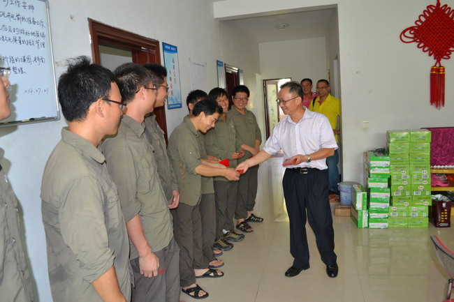8月5日,省地矿局周珍琦总工带领局“三送”活动慰问组赴我队开展慰问活动。慰问组在队领导林全胜、张琰等的陪同下,深入我队永安黄坑地质项目组,给他们送去防暑药品、清凉饮料和慰问金,并与一线职工共进晚餐,用亲切的关怀和深情的慰问,鼓励野外一线职工战高温、保质量完成工作任务。