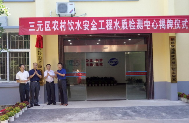 7月5日上午,三元区农村饮水安全水质检测中心在队属福建省地质矿产局三明实验室挂牌成立,标志着三元区“饮水净化”专项活动迈上一个新的台阶,农村饮水安全工程实现规范化管理。三元区副区长吴锡胜,三元区水利局局长翁国荣及队纪检书记李金华,三元区水利局和福建省地质矿产局三明实验室全体干部职工参加了揭牌仪式。