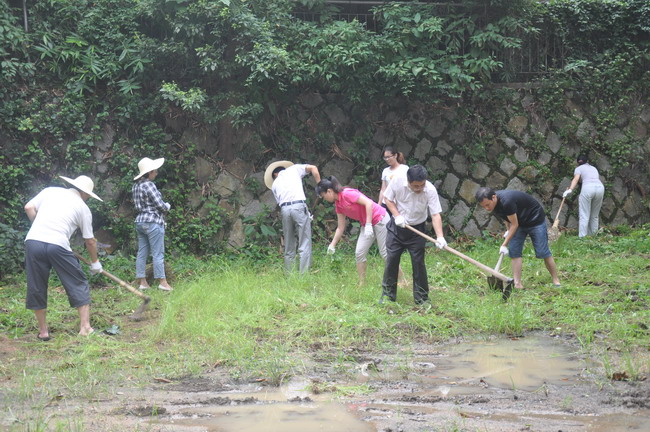 35位党员头戴草帽,手拿锄头、扫帚、簸箕等劳动工具在三明队部大院开展义务劳动。有的党员锄地、拔草,有的党员爬上梯子去除护坡上的青苔和杂草,经过2个小时的辛勤劳动,大院环境面貌焕然一新,以实际行动迎接建党93周年。