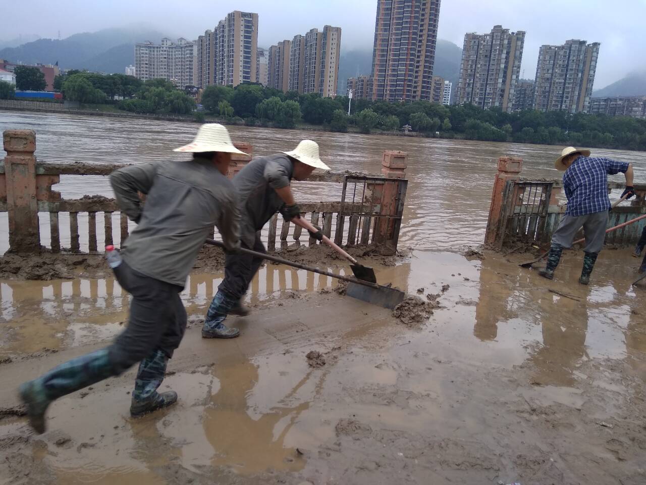 6月12日,三明市6.10暴雨洪灾已经过去了三天。过去的三天里,福建省闽西地质大队派出地质灾害应急处置技术人员全力配合地方政府做好市、县、区的地质灾害险情排查和应急处置工作。现洪水逐渐退却,市内受灾地段一片狼藉,清理工作也刻不容缓,该队党委又派出党员志愿者投入到沙溪河岸灾后“清理家园”工作中。