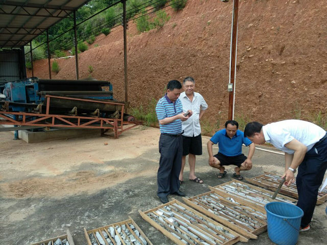 同时,为保证项目工作的良性循环,大队也高度重视项目工作质量和找矿成果。在初步完成区内地表调查工作后,6月13日至6月17日队总工程师邱盛安带领总工办高级工程师郑振梅、资环院院长李昭升一行莅临广西,对新胜矿区和盐山矿区进行实地考察。
