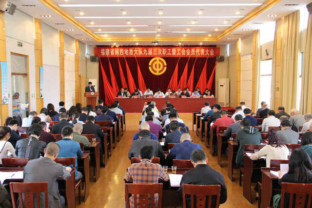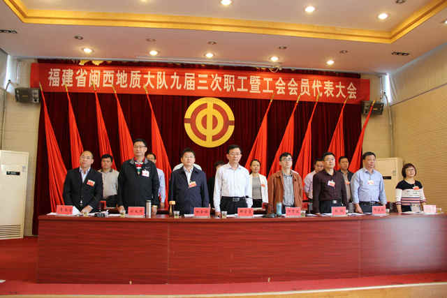 2018年4月11日 上午8:30分,福建省闽西地质大队九届三次职工代表大会在庄严的国歌声中隆重召开,省地矿局党组成员、副局长、工会主席郑荣富、省地矿局离退休干部工作处处长、工会副主席许赞波应邀出席。本次会议应到代表70人,列席代表15人,特邀代表12人,会议由队工会主席李南生主持。