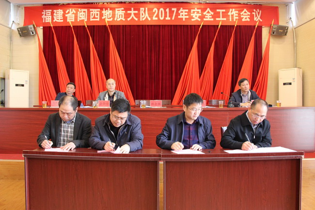 会议首先传达了局2017年安全工作会议精神;方黎闽副队长代表队安委会作了题为《落实安全主体责任 强化安全基础建设,为我队地勘经济发展营造良好的安全环境》的工作报告,总结回顾了2016年安全工作情况,认真分析了安全工作面临的形势和问题,提出了2017年安全工作目标任务,以及实现预期目标应重点抓好的具体工作;会议公布了2016年度安全生产目标管理责任制考评结果,签订了2017年安全生产(工作)目标管理责任书、综治(平安建设)目标管理责任书。