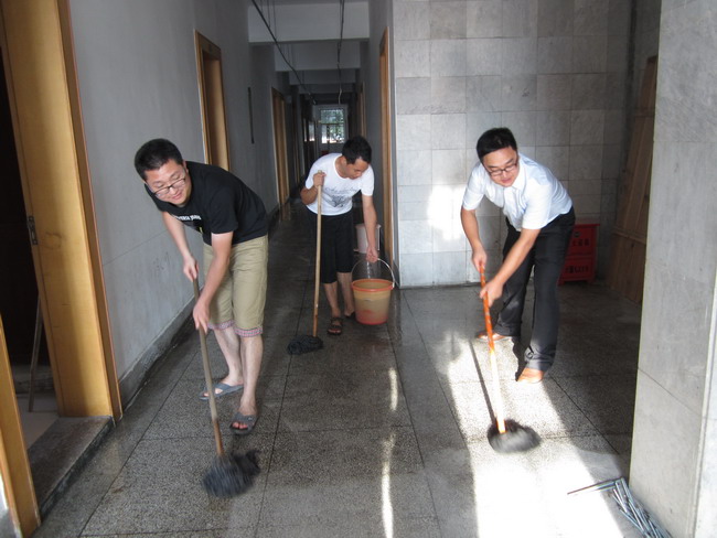 近日,工勘院团支部组织团员青年对队部办公大楼3层办公室和走廊进行大扫除。劳动中,大家不怕累,不怕脏,分工协作,鼓足干劲,对各个卫生死角进行认真的清理,为大家提供了一个干净整洁的办公环境,提高了团员青年的义务劳动意识。