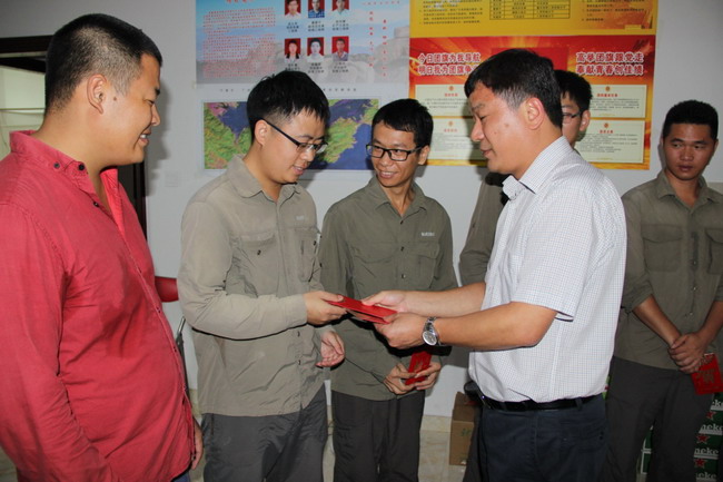 8月19日上午,省地矿局党组成员、纪检组组长吴晓明一行在我队张琰书记,李金华主席的陪同下,深入我队宁德区调项目组开展“三送”活动,看望慰问野外一线职工。